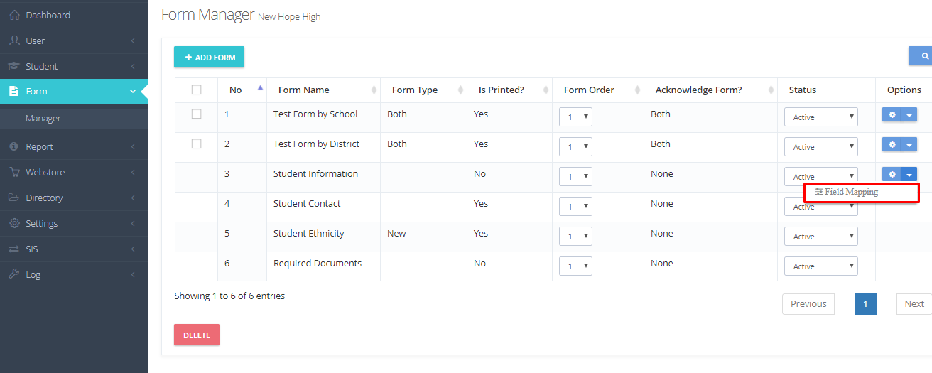 Please Note that while some forms can be set for New Students, Returning Students, or Both.. Custom Reports can only be pulled from either New or Returning students, not both. You will need to pull the new students that have filled out a particular form into the returning student manager in order to generate complete forms for all the students at one time.